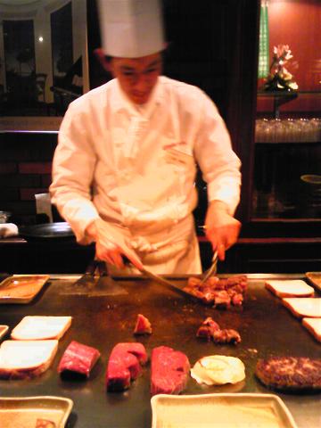 お店のコックさんが目の前でお肉を焼いてくれたり、食べることより、